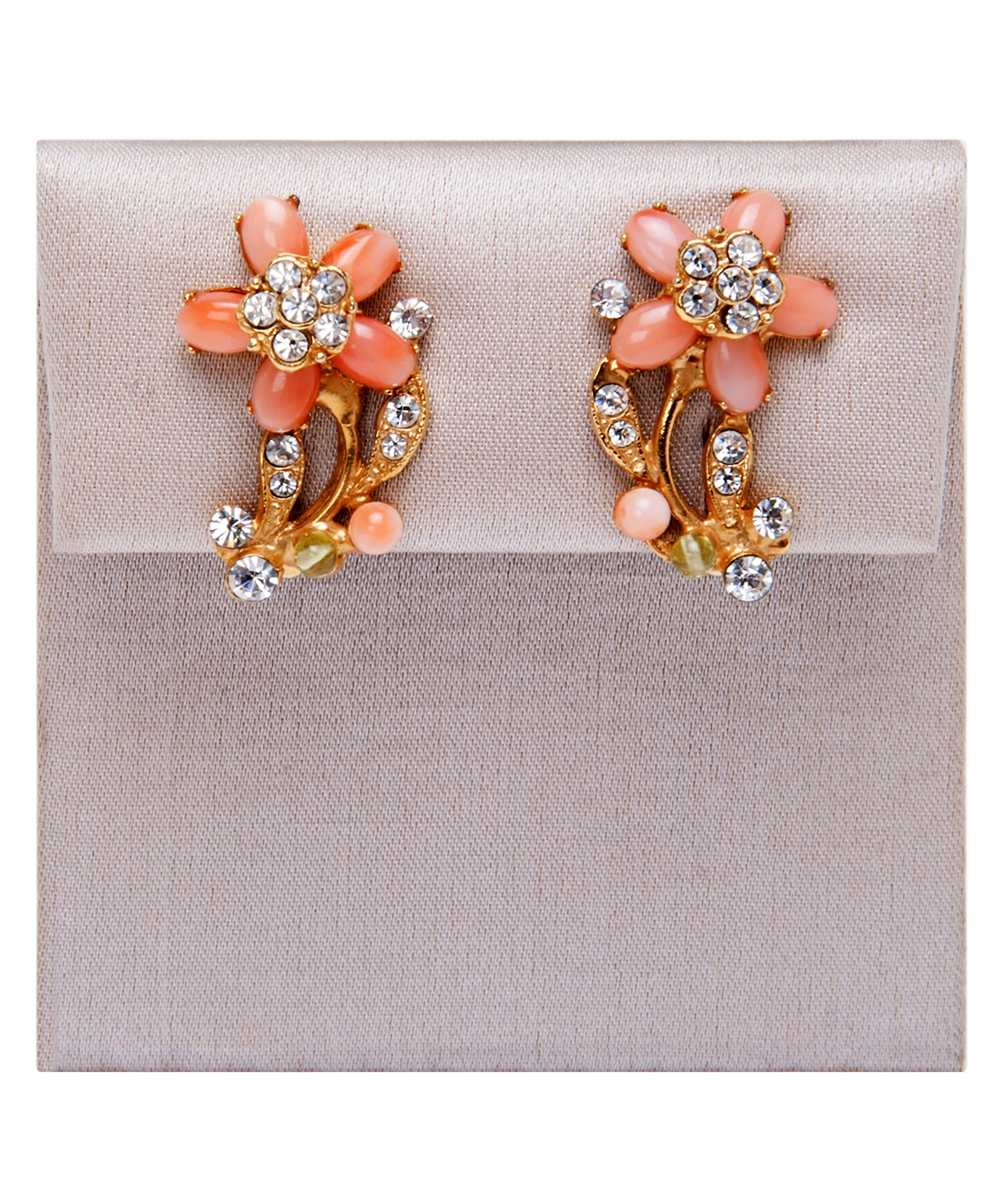 Corals, perdidot gem, cubic zirconia crystals and gold plated metal