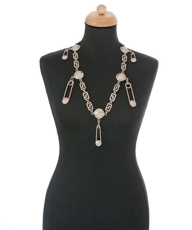 Spring 1994 Versace Silver Medusa 'Safety Pin' Chain Belt / Necklace