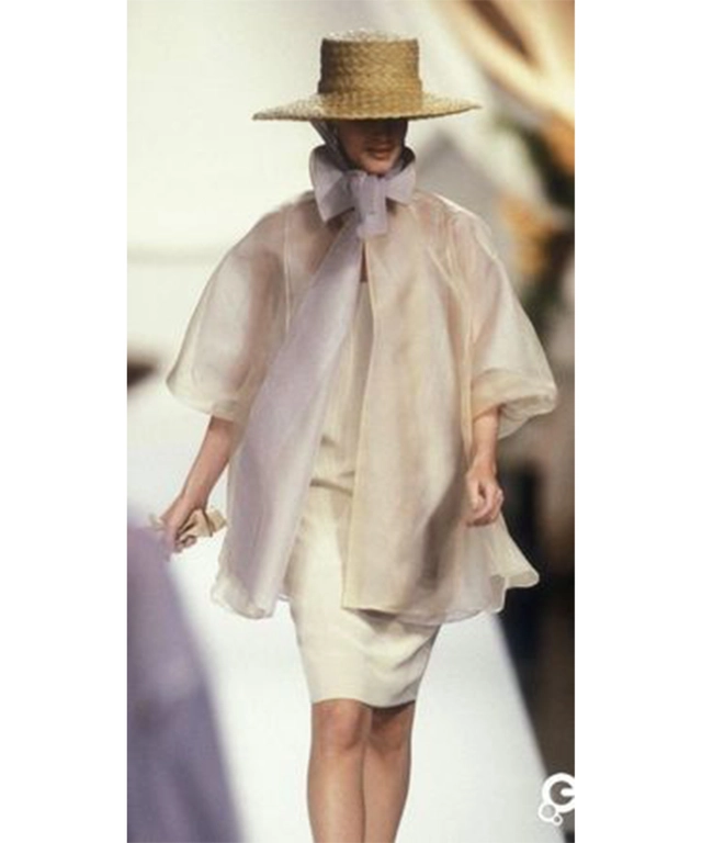 The twin of this wide-brim hat was presented on the 1990 runway, Gianfranco’s second couture collection for Christian Dior. It's made of natural straw which has been masterfully handwoven. A fashion treasure.