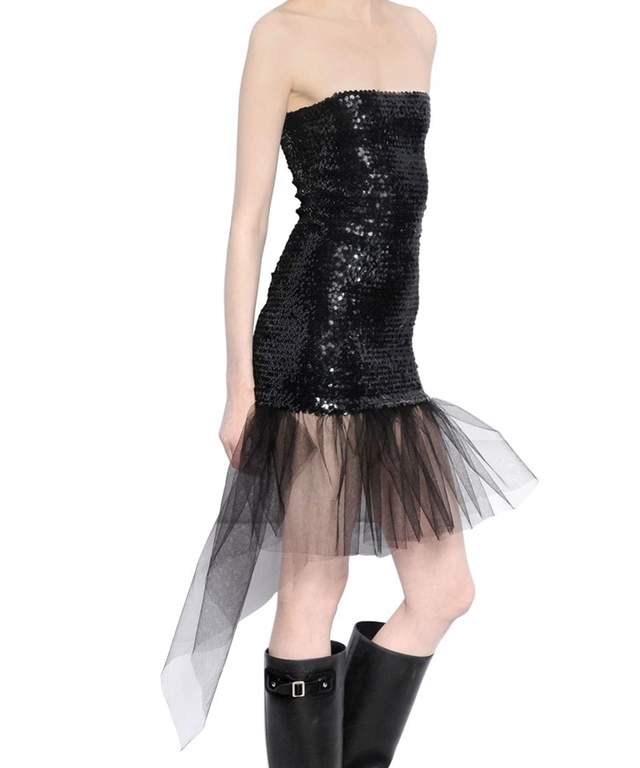 SS16 Saint Laurent Runway Black Sequined Mini Tube Dress